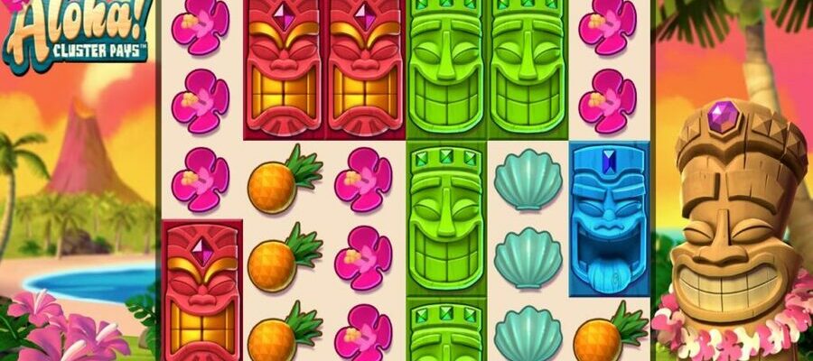Aloha Cluster Pays is a video slot game from NetEnt. It uses a cluster pays mechanic and you win when you form a cluster of the same 9 symbols or more. For more info on the Cluster Pays engine, see our guide to Cluster Pays slot games.