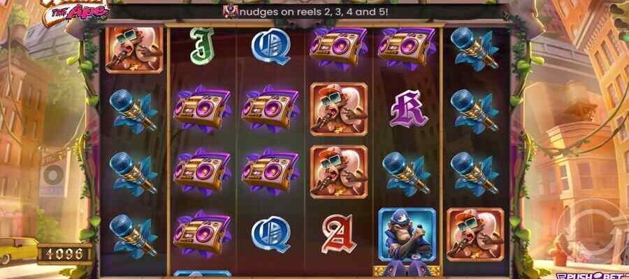 The blinged up ape is the Super High Paying symbol. This pays two of a kind and can appear on all reels. When this symbol lands on reels 2-5, the Nudge feature will activate.