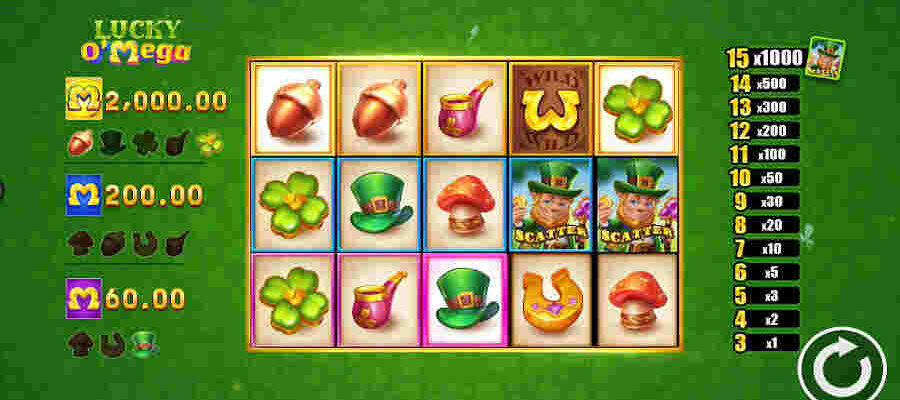 Lucky O’Mega is a medium variance slot game which means you should expect a mix of both low and high wins. The slot reels consist of Irish leprechauns and golden coins. This slot game is played on a 5×3 grid with 20 paylines.