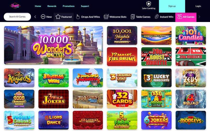 Vegas Wins’ game selection focuses heavily on slots. In total, you can play around 900 casino games, and over 800 of these are slots.