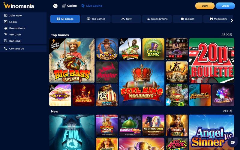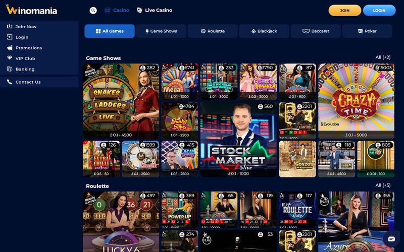 Winomania has a small and compact casino game library. You can play most types of casino games here, including slots, table games and live dealer games. The live casino is provided by Evolution Gaming, so you will be able to play many of the most popular live dealer games like blackjack, roulette, baccarat, Sic Bo and Casino Hold’em.