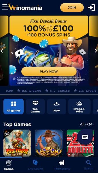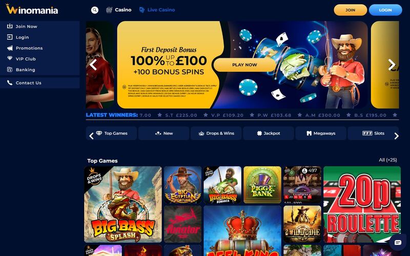 - Winomania will now match your deposit up to a maximum of ยฃ100. For the free spins, just open the Big Bass Splash slot game within 24 hours of your deposit and they will be automatically credited.